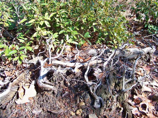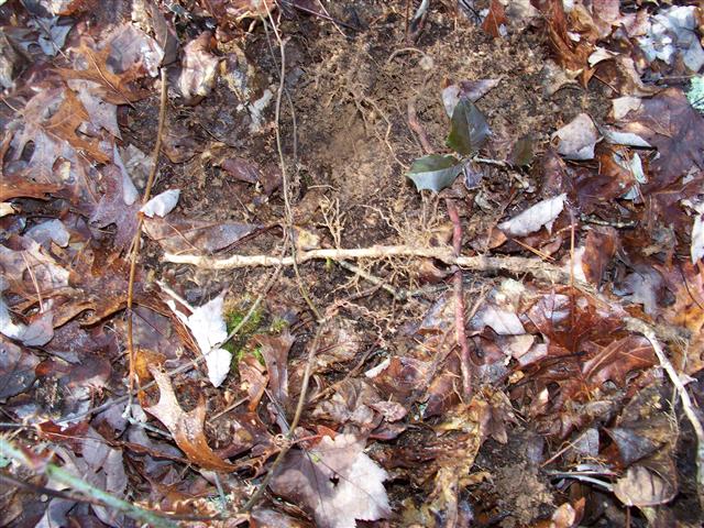 This plant( you see the root)had neat curly-cues on it and I could not pick one off so I decided to get a piece of it and it was very hard to pull with a long root system so I pulled on it till it put me on my butt as I fell backwards. I will have to search to find out what it is! The curly-cues will be neat in my nature jars though and I will re-plant it at our house. I got many wildflowers last year when we moved to North Carolina so we will see what re-appears this spring and summer.