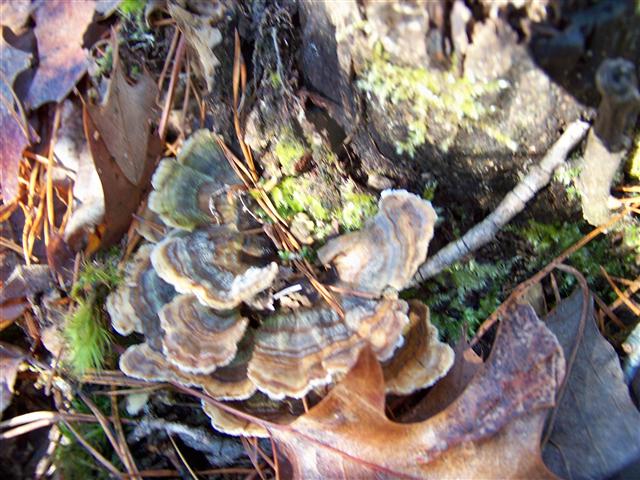 The broken branches show a larger animal has been through but many trees are down and growing fungi. It just astound me what is still live in winter in the woods. I can't wait for spring to see what it brings. The photos I share are just natural. I did not move many leaves as you can see. I just pointed my camera (I did find my Kodak Easy Share) as I had been using my cell phone for my camera the last few months. We will see how long it continues to work. I hope along time. I have to use the sport setting as I do shake a bit and sometimes the second photo I take is better than the first one. I guess age is showing itself, plus I take many RX for my neuropathy.