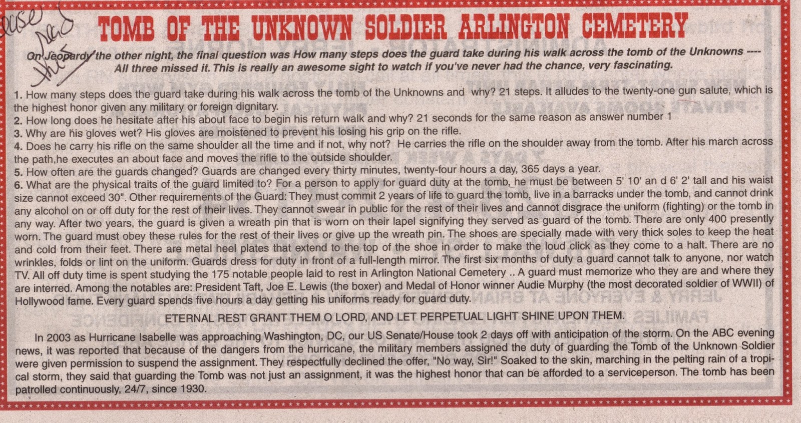 I saw this article in an Historical Magazine I love to pick up at our local library. It has so much interesting information in it and I wanted to share this article on the Tomb of the Unknown Soldier at Arlington Cemetery! These USA Soldiers sure do not have a very cushy job for sure!