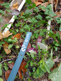 Then, I started collecting the plastic blinds and after several ways of writing plant names on them I finally decided I had to Paint the name on it. When the names formally came off the blinds from a magic marker at least I knew something was planted there and not to did it up when grown down.