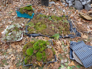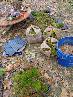 The names are drying in these photos. I also have been collecting some moss for a couple of Etsy orders! Here is how I get started: I collect the moss,lichens, fungi, etc. and then I lay them out in my driveway to sort and clean them up. I try to use garbage bags or my bags I use to recycle my items to the dump, I carry them in these dog food and potting soil bags as I can keep them on the porch and sideways so they stay dry in the rain.